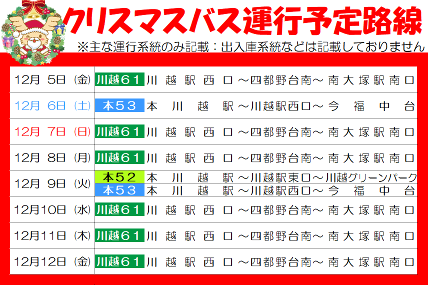 川越で「エンジェ」のラッピングバスが走り出すよ~(クリスマスバス運行情報)12月5日更新