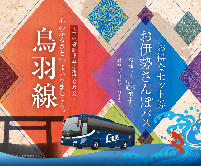 高速バス片道乗車券または往復乗車券(以下バス乗車券)+三重交通 路線バス2日間フリー乗車券(以下フリー券)