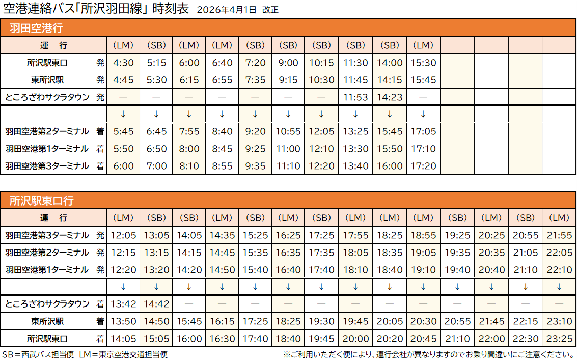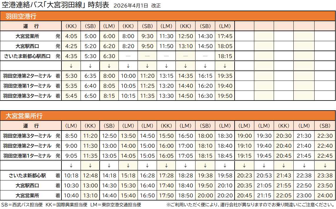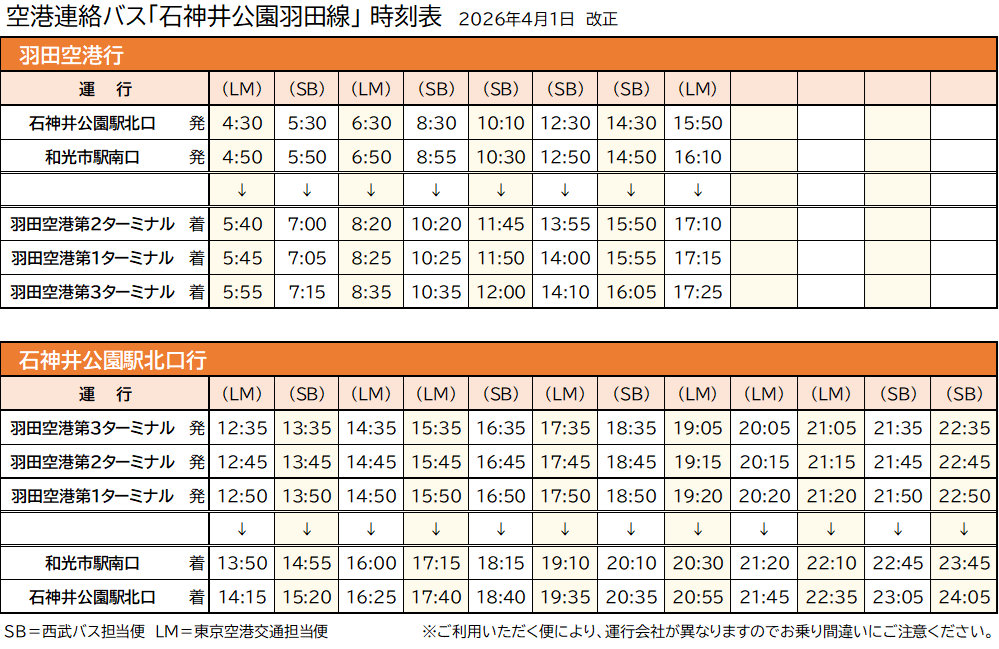 (対象路線「石神井公園羽田線」「所沢羽田線」「大宮羽田線」)