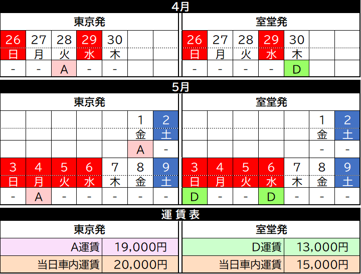 | 運 行 日 (運賃カレンダー) |
